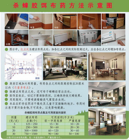 漳州明潔滅鼠除蟲有限公司技術(shù)人員在這提醒市民,因蟑螂屬無性繁殖,在滅蟑過程中切不可將已踩踏或殺滅的蟑尸亂丟亂棄,務(wù)必將蟑尸用火焚毀,以斷其繁殖孳生;在滅蟑投藥過程中,注意不要污染食物,并防止家禽誤食。(附:殺蟑膠餌布藥示意圖)